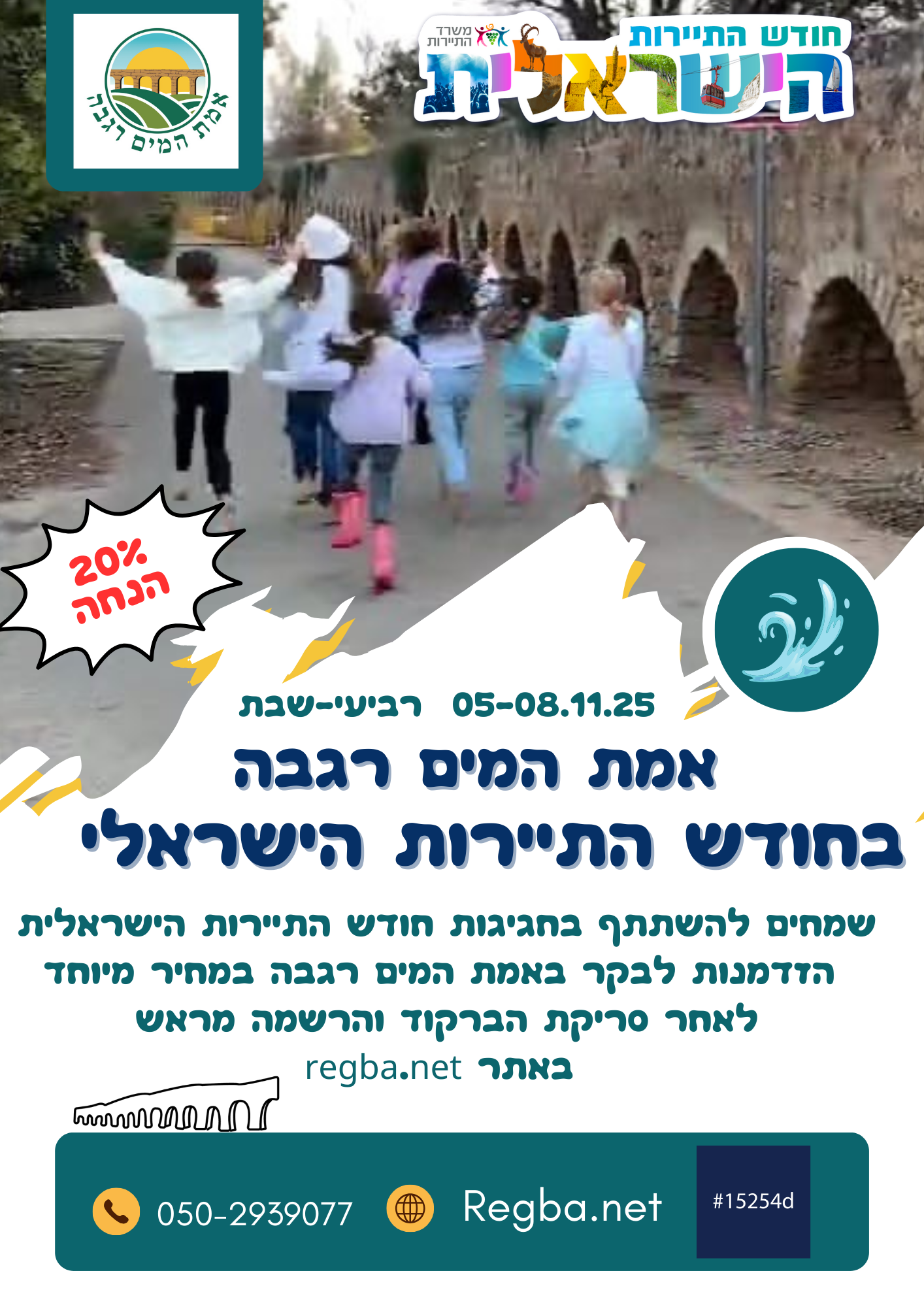 סיורים מודרכים בתאריכים 05-08.11.25 רביעי- שבת בשעה 11:00 בהרשמה מראש.https://regba.net/wp-content/uploads/2025/09/חודש-התיירות-הישראלי.png